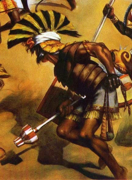 Discovered by Moche fishermen off north Peru coast. Took over their culture. Led it into decadent new phase. Finally dislodged by betrayal and rebellion. Worked dark magic to artificially prolong his evil reign.