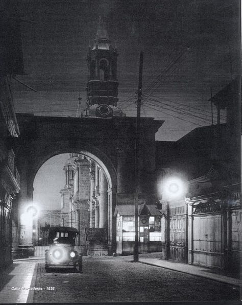Boyden Astronomical Station on Misti’s ash-barren vicuña-haunted slopes. Below sulphurous crater. Atop Inca shrine ruins. In shadow of 20-foot iron cross. Tea garden. Flowers. Balcony with view of Rio Chili’s stony canyon. The Rockefeller Reflector - 16’ Cassegrain telescope protruding from polished dome.