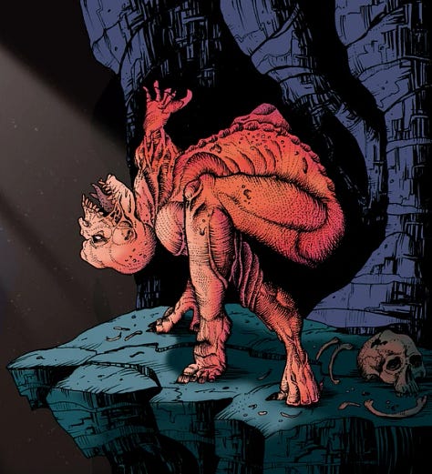 Sending these after Azaro. Wants him dragged back to the ship in chains. Plans on taking him to R’lyeh - impossible futurist city at the Pacific Ocean’s most isolated point. Deliver him up as a bribe from Hell to the nameless octopus god that slumbers below the oceans of the human soul. The oozing presence in all nightmares who commands us in his sleep.